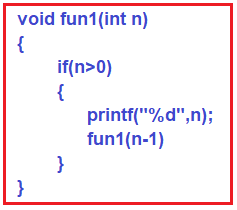 所以,這是由 fun1 函數(shù)形成的遞歸。因此,遞歸函數(shù)的時間復(fù)雜度可以用遞歸關(guān)系的形式表示。