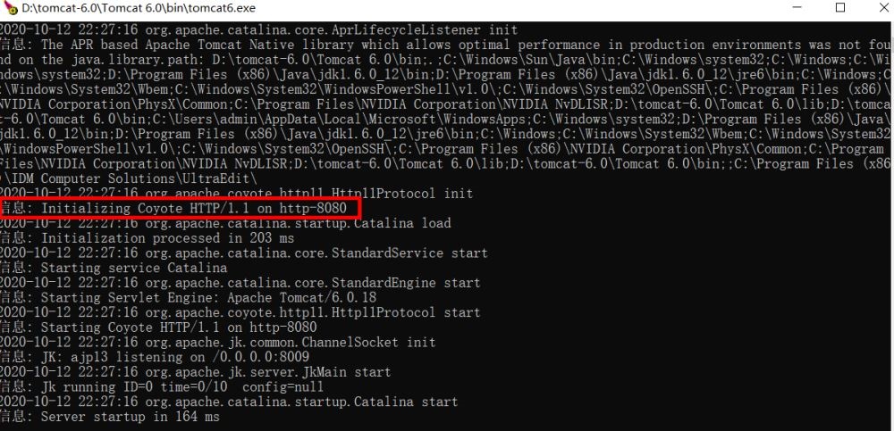 Tomcat安裝時(shí)默認(rèn)端口即為8080。在啟動(dòng)tomcat6.exe時(shí),可以查看到服務(wù)器的監(jiān)聽的端口為:8080