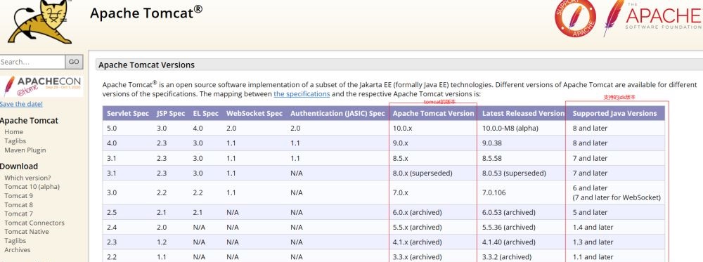 tomcat官方支持版本地址,http://tomcat.apache.org/whichversion.html