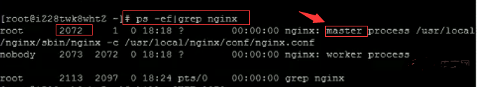 方法二:查找當前nginx進程號,然后輸入命令:kill -HUP 進程號 實現(xiàn)重啟nginx服務(wù)