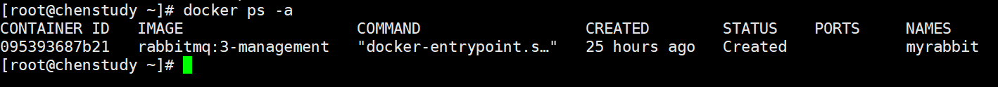 docker run -di --name myrabbit -e RABBITMQ_DEFAULT_USER=admin -e RABBITMQ_DEFAULT_PASS=******** -p 15672:15672 -p 5672:5672 -p 25672:25672 -p 61613:61613 -p 1883:1883 rabbitmq:3-management