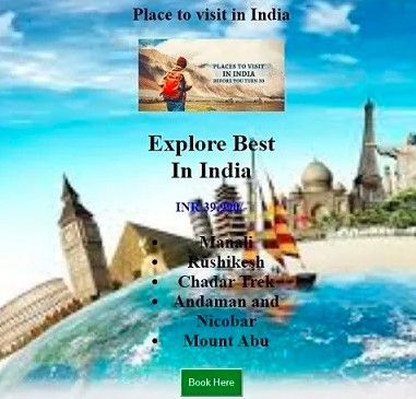 <h2 style="text-align:center">Place to visit in India</h2>