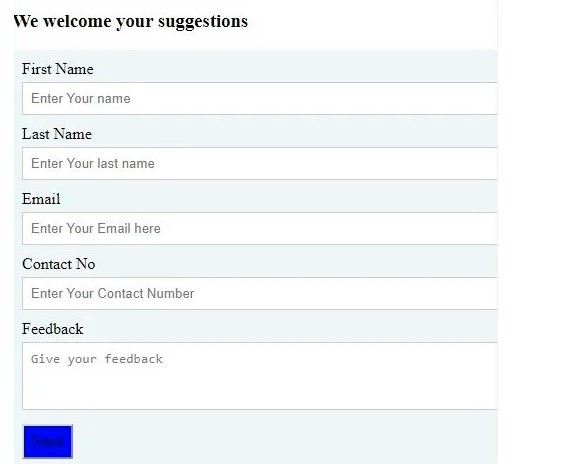<input type="text" id="fname" name="firstname" placeholder="Enter Your name">