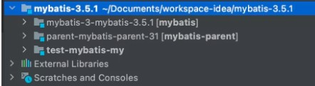 在Idea中新建一個(gè)空項(xiàng)目,將 mybatis 、 mybatis-parent 都放到空項(xiàng)目下,并導(dǎo)入模塊