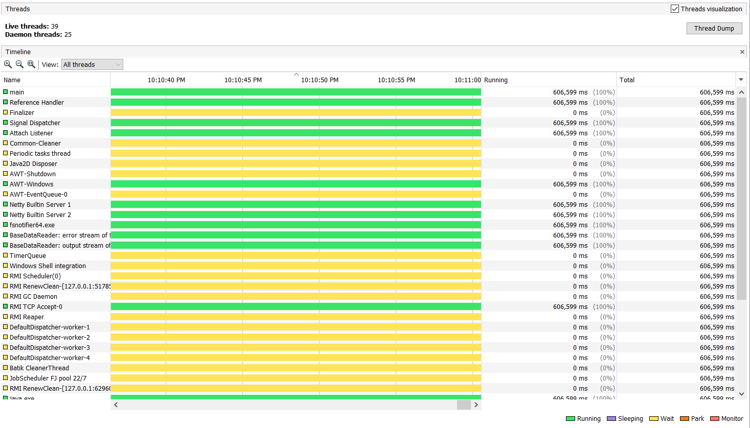 此外,它還顯示了諸如線程狀態(tài)及其持續(xù)時(shí)間: