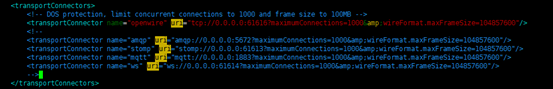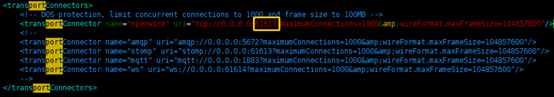 <activemq支持5種協(xié)議:openwire、amqp、 stomp、mqtt、ws,這里我們只使用openwire協(xié)議,注釋其它協(xié)議>