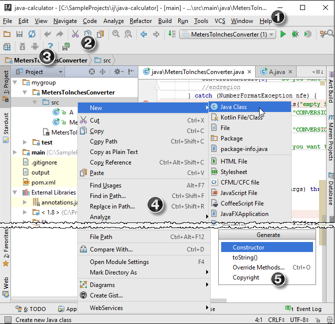 IntelliJ IDEA 菜單欄和工具欄可讓您執(zhí)行各種命令。主菜單和工具欄包含影響整個項目或其大部分內(nèi)容的命令。此外,上下文相關(guān)的彈出菜單可讓您執(zhí)行特定于項目一部分的命令,如源文件、類等。幾乎每個命令都有一個關(guān)聯(lián)的鍵盤快捷方式,可以更快地訪問它。