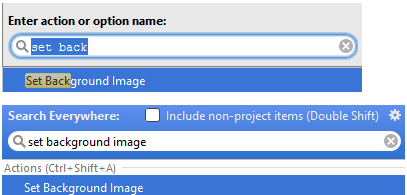 • 如果您知道要執(zhí)行哪個操作,但不知道在何處找到相應(yīng)的命令,只需按下 Ctrl+Shift+A,鍵入要執(zhí)行的操作名稱的某部分,然后從建議列表中選擇所需的操作。