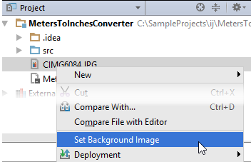 如果在 IntelliJ IDEA 項目中已經(jīng)選擇了圖像,則此操作也可從“項目”工具窗口的上下文菜單中獲取: