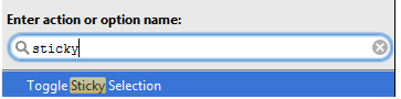 要切換粘性選擇,請按 Ctrl+Shift+A ,在彈出框類型中粘滯,選擇從建議列表中選擇“切換粘性選擇”: