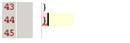 如果編輯器找不到大括號(hào),括號(hào)或標(biāo)簽,則將不匹配的對(duì)象用粉紅色突出顯示,而插入符號(hào)位于其旁邊,并帶有一條紅色的卷曲。