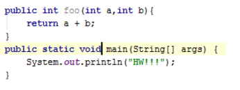 IntelliJ IDEA 將所選語句移動到上一個語句之上,或者直接位于下一個語句的下面,執(zhí)行語法檢查。例如,將光標放在方法聲明中: