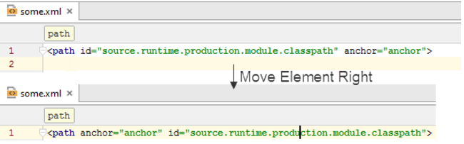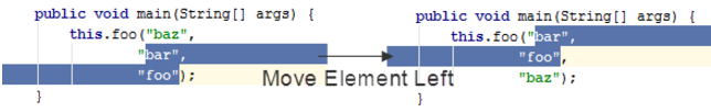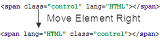 • 在主菜單上,選擇命令 代碼| 向左移動元素(Code | Move Element Left)或 代碼| 向右移動元素(Code | Move Element Right)