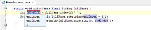 System.out.println(fullName.substring(0, firstNameEndIndex));