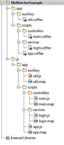 output $ProjectFileDir$\js\$FileDirRelativeToProjectRoot$\ --compile --map $FileName$
