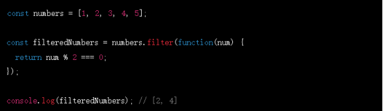 在這個(gè)示例中,匿名函數(shù)被作為filter方法的參數(shù)傳遞,用于篩選出數(shù)組中的偶數(shù)。