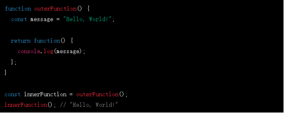 在這個(gè)示例中,outerFunction定義了一個(gè)匿名函數(shù),并返回了該匿名函數(shù)。這個(gè)匿名函數(shù)可以訪問(wèn)outerFunction中定義的message變量,并將其輸出到控制臺(tái)上。