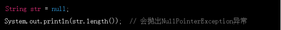 在上述示例中,str被賦值為null,而在下一行代碼中嘗試訪問它的length()方法,由于str為null,就會(huì)拋出空指針異常。