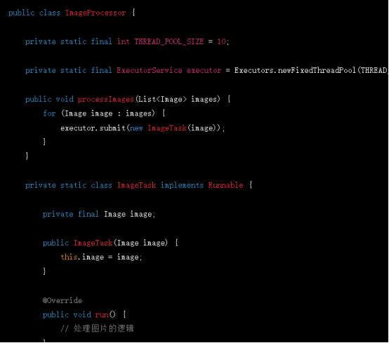 下面是一個(gè)使用Java線程池處理圖片的示例代碼:
