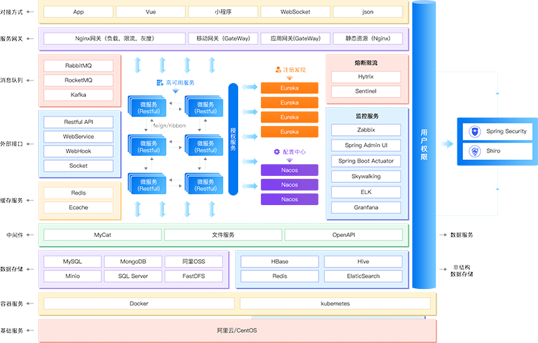 | 技術(shù)架構(gòu) | SpringBoot、SpringCloud、Mysql-Cluster、Mybatis-plus、Redis-Cluster、MongoDB、Elasticsearch、FastDFS、 RocketMQ、Oauth2.0、 JWT、 LCN 、AliPay 、Wechat、 Linux、Nginx、Docker、 ECS+JDK1.8 、IDEA(IDE)、Maven、 GitLab、Tomcat、 Postman、Navicat、 SourceTree、Vue、elementui |