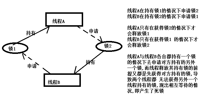 如果兩個或者更多的線程因相互等待而被永遠(yuǎn)暫停,我們就稱這些線程產(chǎn)生了死鎖。