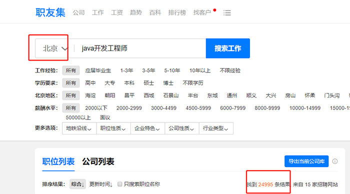 北京地圖Java開發(fā)招聘量(數(shù)據(jù)來源職友集)
