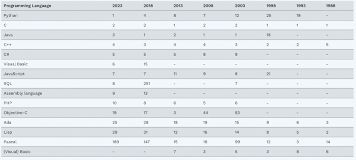 Top 10 TIOBE指數(shù)走勢(shì)(2002-2023)