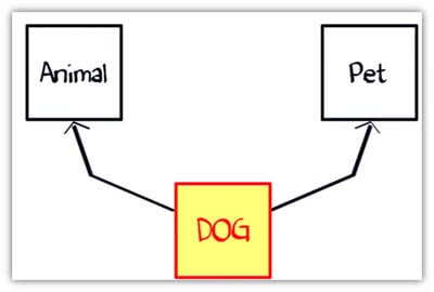假設(shè)您有一個要求,其中“狗”類繼承“動物”和“寵物”類(見下圖)。但是你不能在 Java 中擴(kuò)展兩個類。那你會怎么做?解決方案是接口。