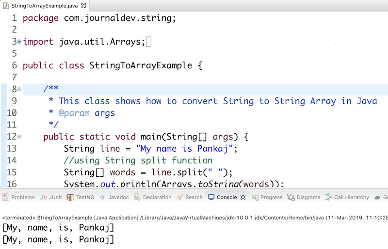 * This class shows how to convert String to String Array in Java