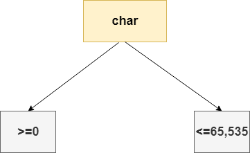 char 范圍介于 0 到 65,535(含)之間。