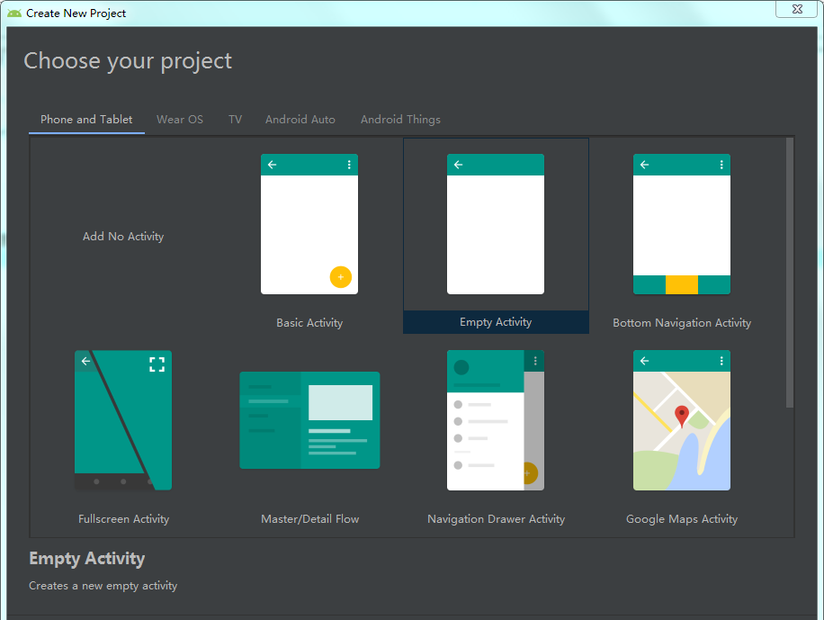 點擊Start a new Android Studio project,出現(xiàn)下面的界面:
