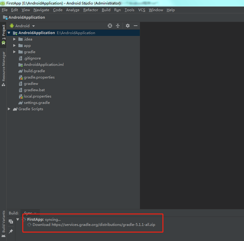 點擊Finish按鈕,然后進入漫長的等待,等待工程創(chuàng)建完成。工程創(chuàng)建完成后,開發(fā)界面還未顯示完整,又開始進入gradle的下載過程: