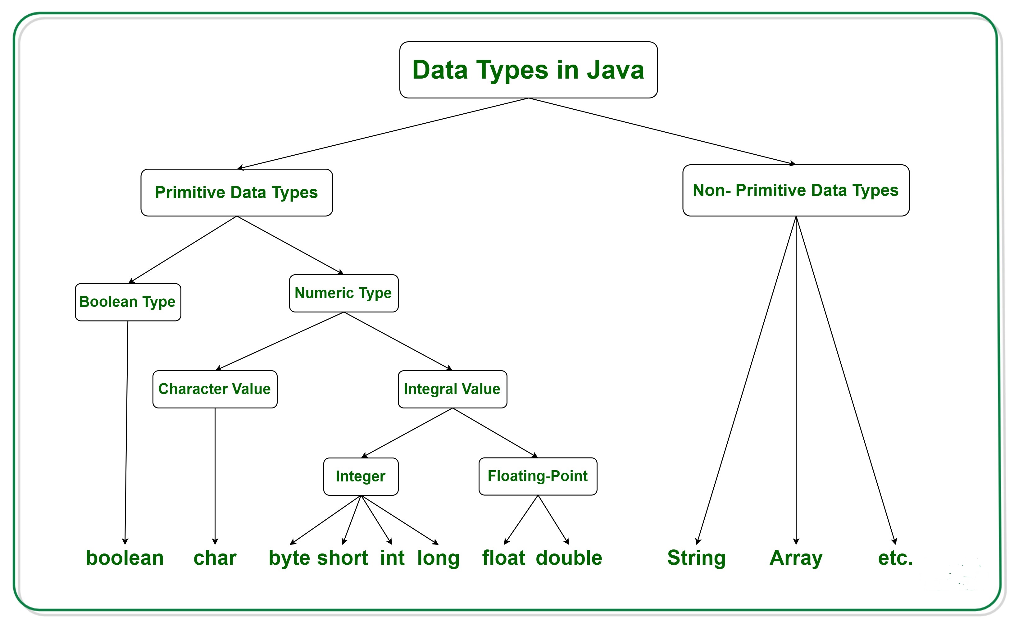 Java的數(shù)據(jù)類型是不同的大小和值,可以存儲(chǔ)在根據(jù)方便和情況制作的變量中以覆蓋所有測試用例。另外,讓我們掩蓋其他重要的疾病,主要有兩種語言,如下所示: