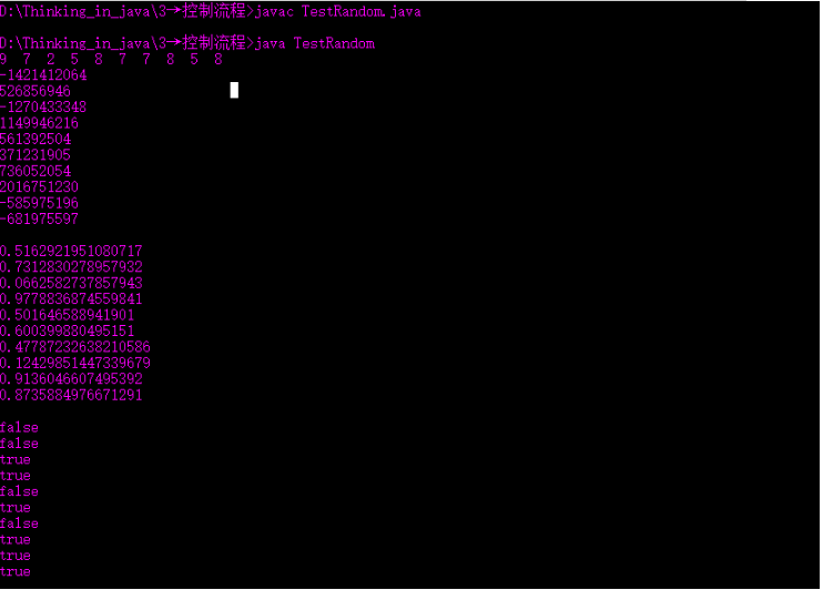 boolean nextBoolean():返回下一個(gè)偽隨機(jī)數(shù),它是取自此隨機(jī)數(shù)生成器序列的均勻分布的 boolean值。