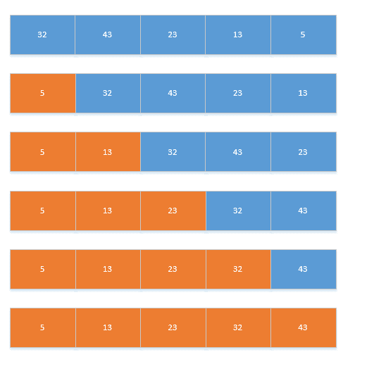 比對完成后,將最小的值與第一個數(shù)的值交換。
