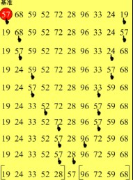 借用圖:選擇一個(gè)基準(zhǔn)(第一個(gè)或最后一個(gè))每次比較之后判斷放在基準(zhǔn)的哪一邊。