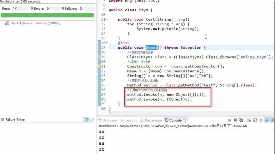 既然是講invoke方法,那就不講怎么使用反射了,代碼上來(lái)先: