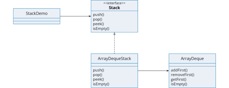 這是適配器的實(shí)現(xiàn)(GitHub 存儲(chǔ)庫(kù)中的ArrayDequeStack類(lèi)):