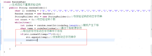 4.先判斷產(chǎn)生的字符在動態(tài)字符串里是否存在,不存在的話添加進去,并將動態(tài)字符串中的字符個數(shù)加1
