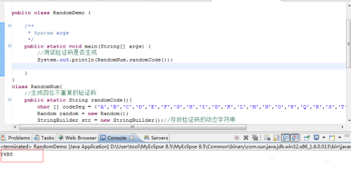 6.控制臺輸出,測試驗證碼是否生成成功,查看隨機結(jié)果。