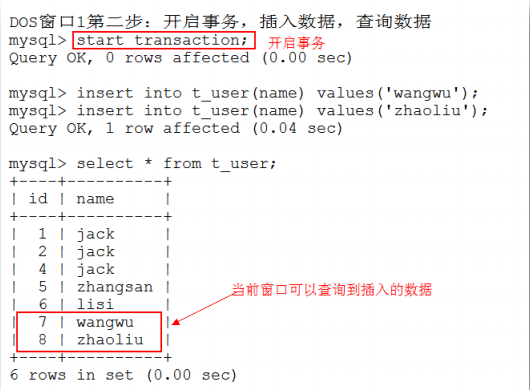 成功用法:start transaction;commit;