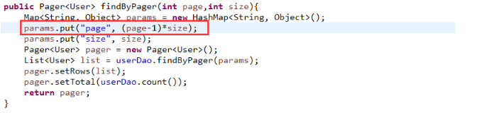 List<User> list = userDao.findByPager(params);