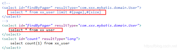 <select id="findByPager" resultType="com.xxx.mybatis.domain.User">