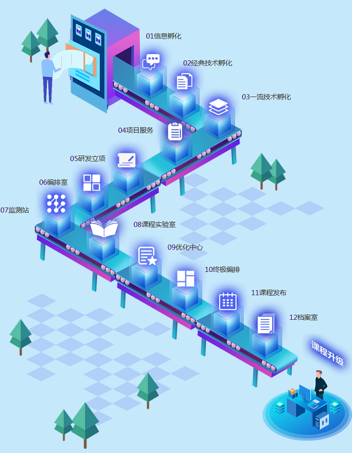 在動態(tài)的市場和學習中,新技術無時無刻不在迭代,完整緊密課程研發(fā)流程,讓課程的更新有章可循,在新技術快速課堂化時顯得不那么手忙腳亂,既保證了新技術能快速進入課堂,又能保持整體授課進度,節(jié)奏不被打亂。