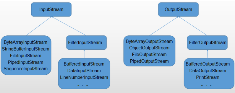 在Java 1.0中,類庫的設(shè)計(jì)者首先限制所有與輸入相關(guān)的類都繼承自InputStream,而與輸出相關(guān)的所有類都繼承自O(shè)utputStream。