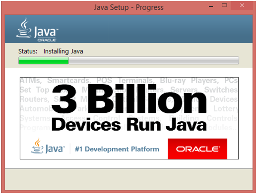 設(shè)置正在將 Java 安裝到計算機。