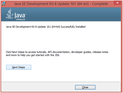 我們已經(jīng)成功安裝了 Java SE development kit 8。關(guān)閉安裝設(shè)置。