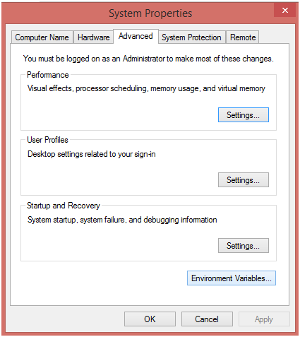 上面的窗口將打開。單擊“環(huán)境變量”繼續(xù)。