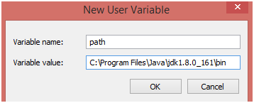 在變量名中輸入“路徑”,并在變量值中輸入 JDK 內(nèi) bin 文件夾的路徑。單擊確定。