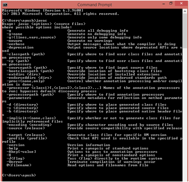 現(xiàn)在Java路徑已經(jīng)設(shè)置好了。打開命令提示符并鍵入“javac”如果您已經(jīng)打開了命令提示符,建議您關(guān)閉現(xiàn)有窗口并重新打開它。